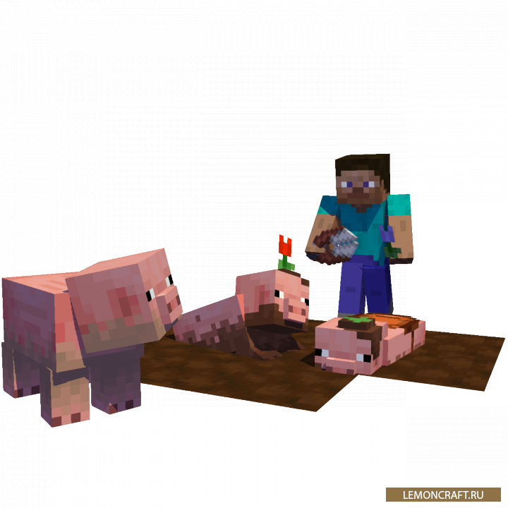 Мод на мобов из мобильной версии игры Earth Mobs добавляет в игру три новых моба, которых вы могли наблюдать в мобильной версии игры Minecraft Earth. В первую очередь, это грязная свинья, которая получается из обычной, если та поваляется в грязи. Второй моб, это цветочная корова, она обитает в цветочном биоме и ускоряет рост растений во время сна. Третий моб, это грибная курица, которая снесет особые яйца, накладывающие эффект медлительности. Так же эта курица может, с небольшой вероятностью, обратить некоторых мобов в грибной вариант.
