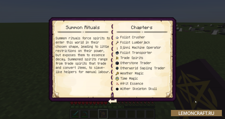 Мод на оккультизм Occultism добавит в игру новое понятие в магии основанное на волшебных обрядах и оккультизме. Изучив данный вид знаний вы сможете автоматизировать некоторые задачи, хранить большое количество предметов, ну и конечно же, призывать демонов и духов, которые станут вам отличными помощниками.