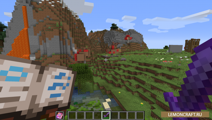 -Molding Lands: Преобразует все блоки травы, бревен и листьев рядом с игроком в мицелий!